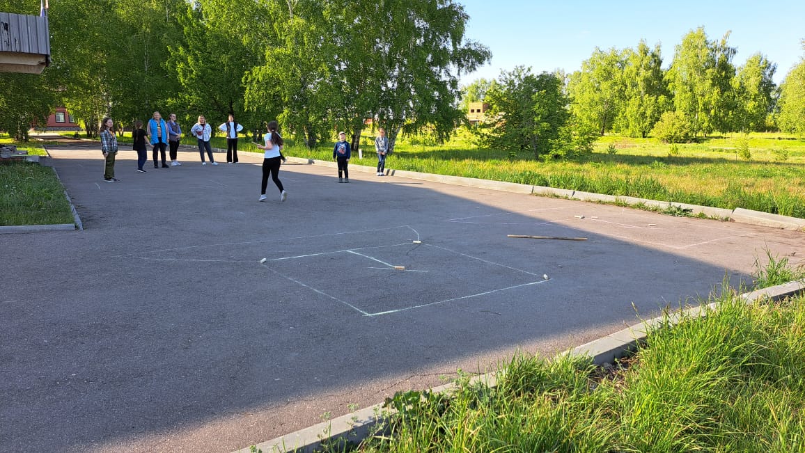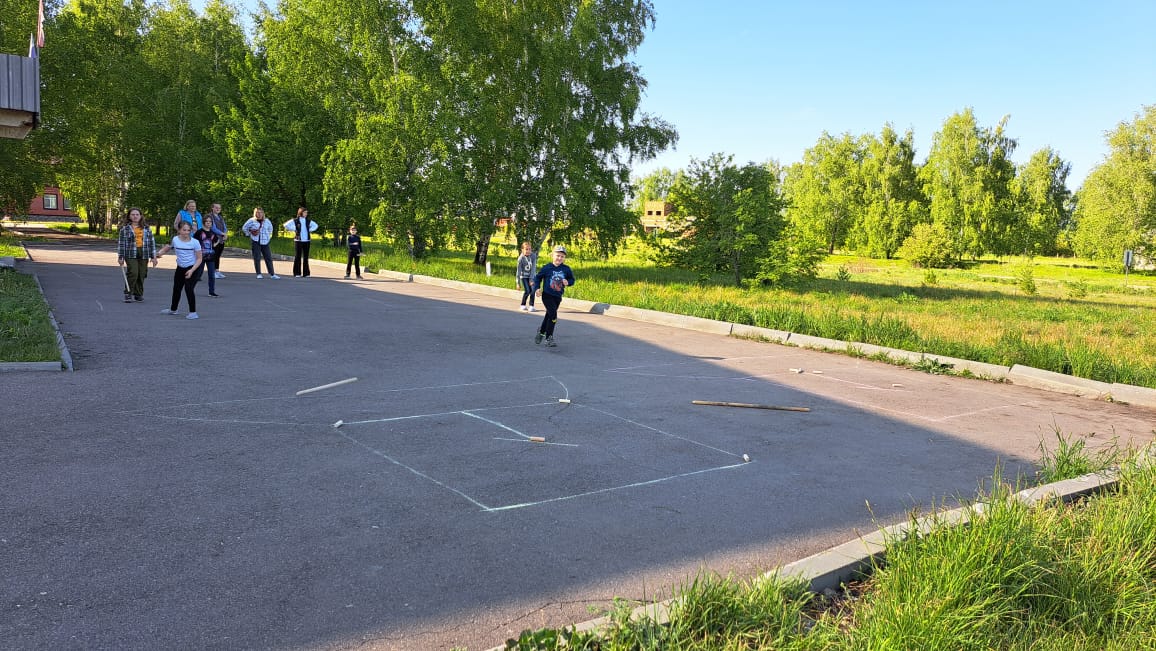 Провели соревнования по "Городкам". Участвовало две команды. Победила команда "Ромашки". Они выбили 5 фигур за 48 минут. Вторая команда "Лилии" выбили 5 фигур за 55 минут.